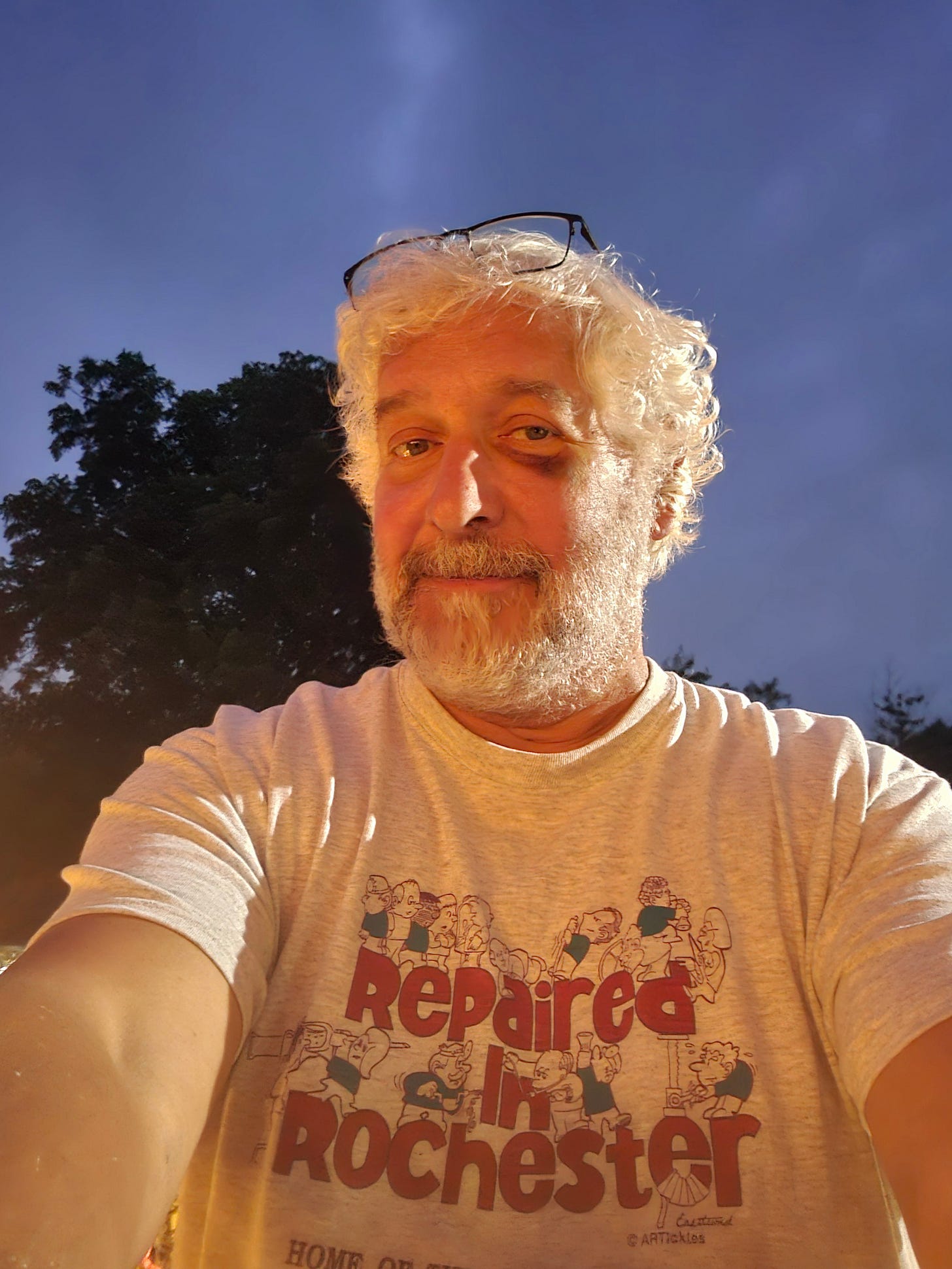 My black left eye looks like the result of a drunken rumble during east side night at the State Fair. My orbital bone was fractured when I fell, but looks worse than it feels.
